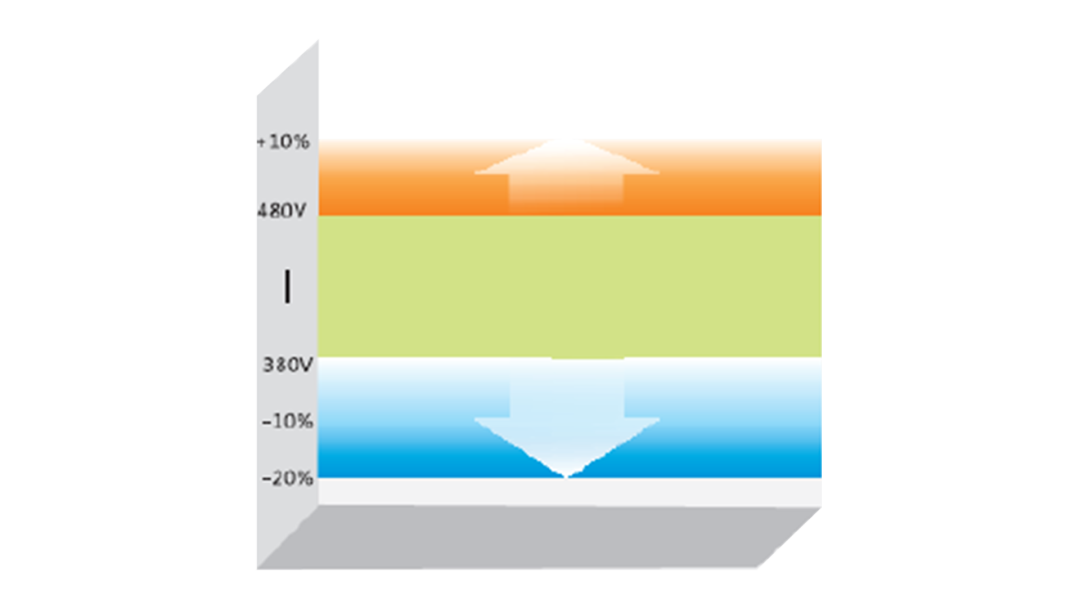 可在200~240V/380~480V(-20%~+10%)電壓范圍內工作,滿足苛刻的用戶電網環境。