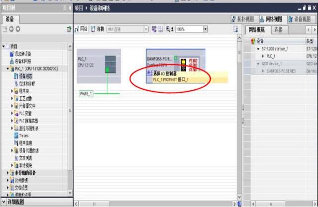 十、網絡配置:將丹佛斯變頻器加入到 ProfiNET 網絡總線上,點擊‘設備和網絡’-‘選 擇變頻器’-‘選擇 I/O 控制器’-‘PLC1_-PROFINET 接口_1’,如圖十一所示,配置完成 后,如圖十二所示: