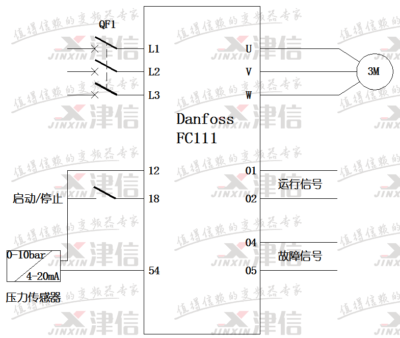 丹佛斯FC111變頻器是新一代的風機水泵專用型變頻器,這里我們介紹FC111單泵恒壓供水的詳細應用。