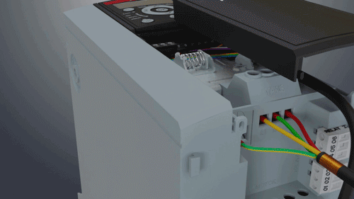 2、將數據線兩端分別連接變頻器及柜門上面板后的數據線接口