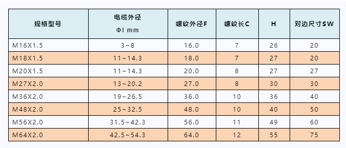 電纜填料函推薦采用船用電纜TJ型防水填料函和相應(yīng)規(guī)格尺寸的GMP尼龍螺母,其中TJ型夾緊式填料函采用黃銅鍍鎳外殼和硅橡膠芯套,能夠滿足IP68防護等級,適用于船舶、造船行業(yè)的使用標(biāo)準(zhǔn)。GMP尼龍螺母可以工作于-40℃至100℃,能滿足對電纜線徑范圍在3-90mm的緊固和密封。
