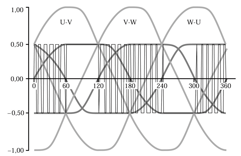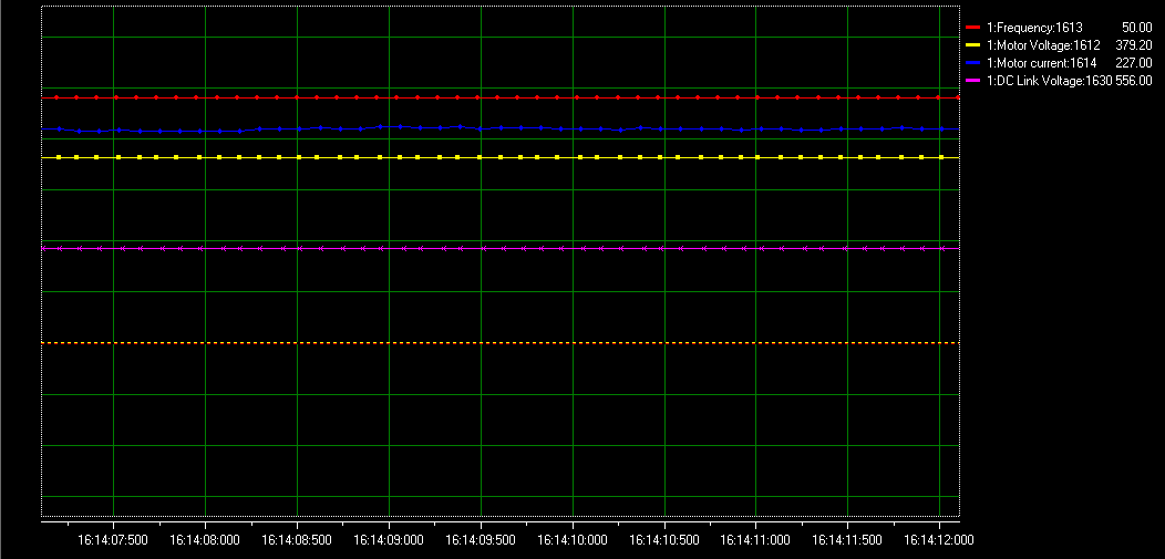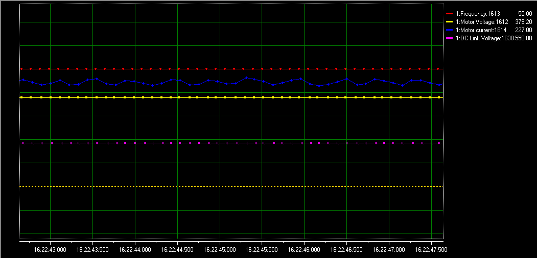 對(duì)以上參數(shù)進(jìn)行調(diào)整后,客戶描述的現(xiàn)象(電機(jī)的震動(dòng)和噪音)明顯得到解決,以下為變頻器經(jīng)過調(diào)整過后的電機(jī)波形和音頻文件