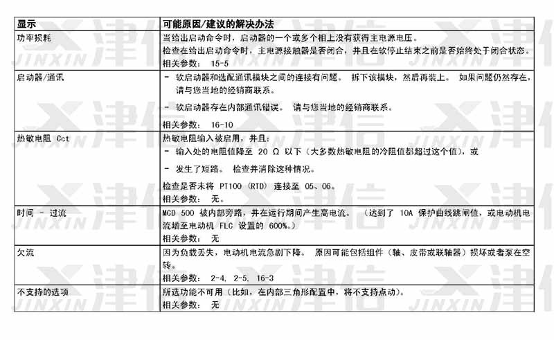 在軟啟動器使用過程中,如果偵測到故障信息,軟啟動器會在日志中記錄相關信息,還可能跳閘或發出警告。軟啟動器跳閘后,只有將該軟啟動器復位才能重新啟動。 如果發出警告,則一旦消除了警告原因,軟啟動器便會自動復位。