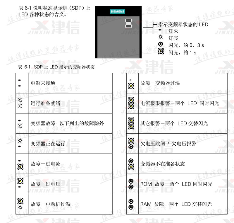故障值: 1.有些功率部件的測試有故障 2.有些控制板的測試有故障 4.有些功能測試有故障 8.有些 I/O 模塊的測試有故障。(僅指 MM 420) 16.上電檢測時(shí)內(nèi)部 RAM 有故障 |