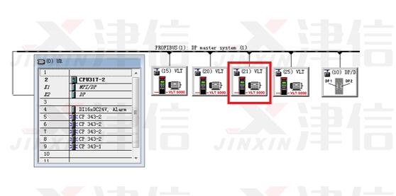 為使改造系統(tǒng)完美,在第一種方案試機成功以后,我們又為客戶設(shè)計了第二套改造方案,將從機變頻器也加入到DP總線上,