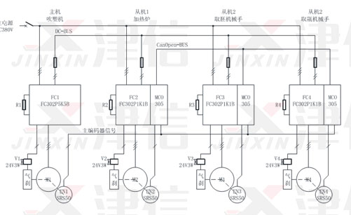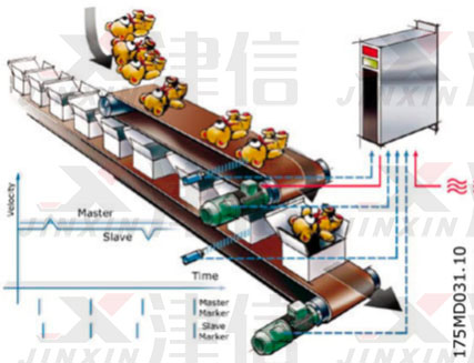 丹佛斯FC300高性能驅動器加上新一代MCO305高速運動專用控制器,可實現定位控制功能。電機可以選用異步或同步伺服電機。支持各種各樣的電機反饋裝置,從增量編碼器、絕對位置編碼器一直到旋轉變壓器。針對丹佛斯MCO305同步控制功能,上海津信變頻器有限公司為客戶在食品飲料行業(yè)吹瓶機上進行了技術應用。