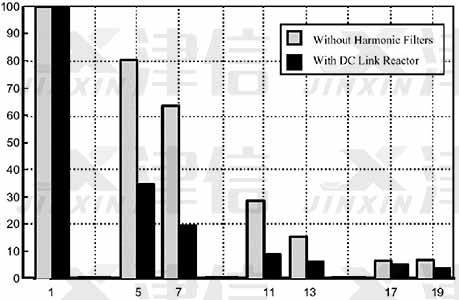 最后我們通過實際測量計算得到的真實數(shù)據(jù),來說明雙直流電抗器對高次諧波的明顯抑制作用。