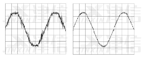 u 圖9所示是加裝直流電抗器以后測量到的電源電壓的波形。可以看出電源電壓得到了明顯的改善,平頂波消失了,傳導(dǎo)干擾明顯減小。電源電壓更接近于平滑的正弦波。